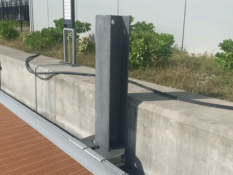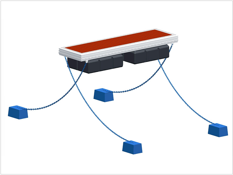 Der Ponton wird durch das elastische Gummiseil und den Beton unter dem Meeresboden verankert.Die Sealex-Vorrichtung ist sehr stark und stabil, so dass die Schwimmbrücke beim Tidenwechsel immer die gleiche horizontale Position und die Höhe des Freibords beibehält und den Auftrieb im Bereich von 70% einstellen kann.